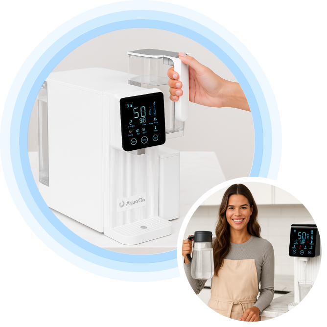 No plumbing or installation needed. Just plug it in, fill the feed tank, and enjoy instant hot, cold, or room-temperature purified water.